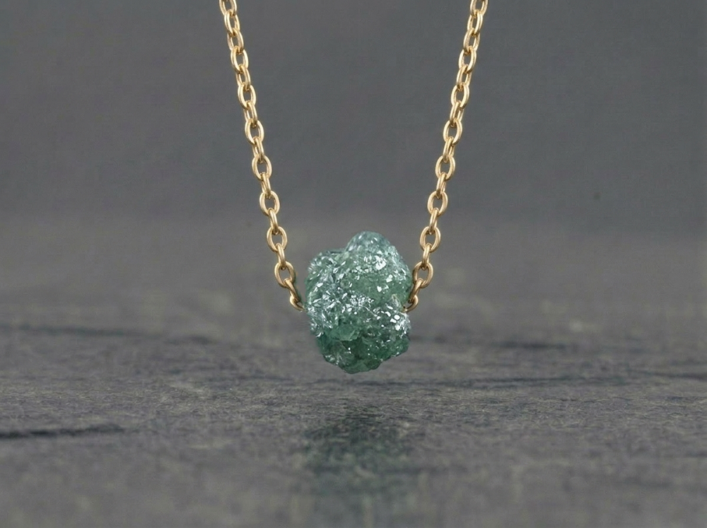 Halskæde i 18 karat guld med rå diamant på ca. 6-8 mm.