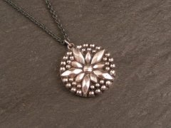 Lang oxyderet halskæde i sterling sølvmed blomster vedhæng.